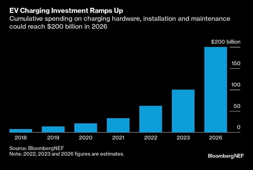 Rzeczywiście, roczne wydatki na infrastrukturę ładowania pojazdów elektrycznych prawie podwoiły się do 62 miliardów dolarów w zeszłym roku. Rynek ładowania jest odzwierciedleniem rynku pojazdów elektrycznych, gdzie liderami są Chiny i Europa. Stany Zjednoczone zyskują jednak na atrakcyjności, ponieważ 7,5 miliarda dolarów z funduszy rządowych zostało zarezerwowanych specjalnie na infrastrukturę ładowania zgodnie z dwupartyjną ustawą o infrastrukturze.