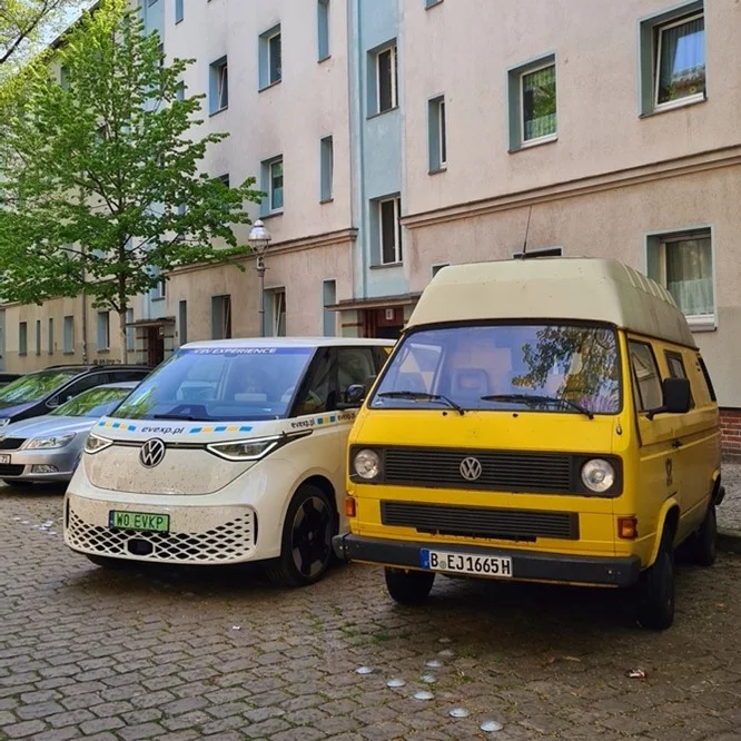 Decyzja o zakupie Buzza podjęta została na fali wszechobecnej ekscytacji po oficjalnej premierze auta. Jako pojazd klubowy poza podstawową funkcją transportową miał za zadanie zwracać na siebie uwagę i wzbudzać uśmiech na twarzach wszystkich dookoła. Mimo wad w postaci sporego apetytu na prąd, średniej jakości plastików czy też braku trzeciego rzędu siedzeń (to boli najbardziej) wciąż jesteśmy niezwykle zauroczeni naszym Bulli. Łącznie spędziliśmy już co najmniej kilka godzin na spontanicznych rozmowach na parkingu z ludźmi zagadującymi na temat naszego Buzza oraz nie pamiętamy tygodnia, w którym nie zobaczylibyśmy kciuka w górę od kierowcy stojącego obok na światłach. O taką właśnie energię chodzi w tym aucie 😊.