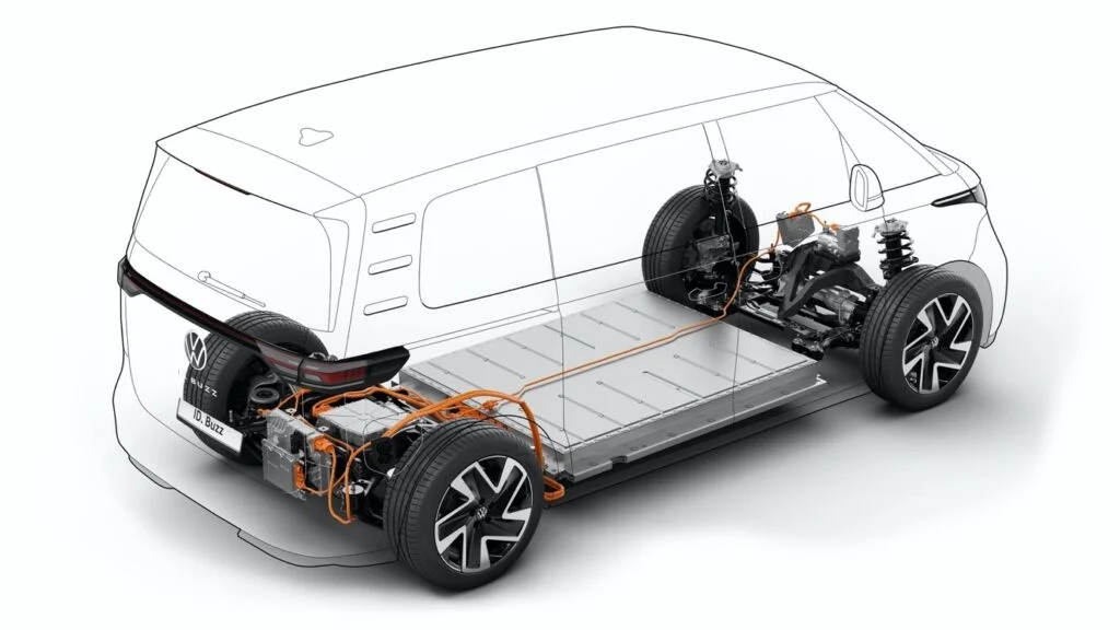 Obecnie Buzz dostępny jest jedynie w wariancie z baterią o pojemności 77 kWh (82 kWh brutto) zasilającą silnik elektryczny o mocy 204 KM zintegrowany z tylną osią. Mimo mało imponującej na pierwszy rzut oka wartości 10,2 s w sprincie od 0 do 100 km/h w świecie vanów jest to wynik wybitny. W połączeniu z wysoką elastycznością za sprawą dostępnego w każdej sekundzie wysokiego momentu obrotowego (310 Nm) ID.Buzza jest niezwykle zwinny jak na swoje gabaryty. Ponad 200 KM przenoszonych wyłącznie na tylną oś są również w stanie rozbudzić wyobraźnie mniej odpowiedzialnej części kierowców jednak Volkswagen dmuchając na zimne uniemożliwia użytkownikowi ograniczenie funkcjonowania systemu ABS dlatego szanse spotkania lecącego bokiem Buzza są niewielkie J