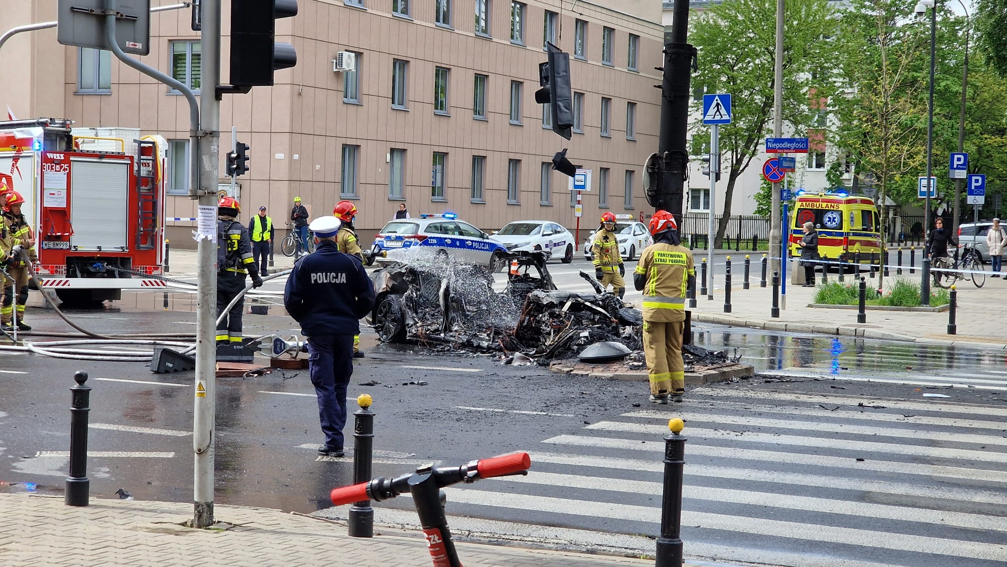 Na warszawskim Mokotowie spłonął Lucid Air Dream