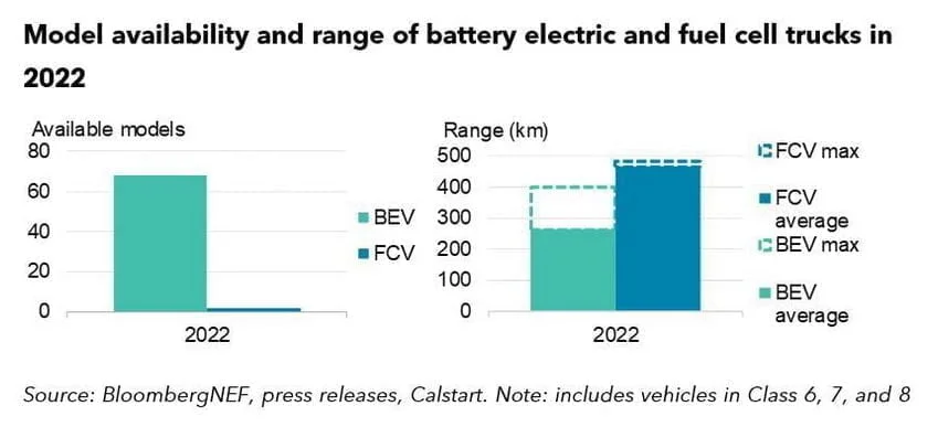 Modele z ogniwami paliwowymi w tym segmencie mają być wprowadzane w większej liczbie dopiero pod koniec lat dwudziestych. Infrastruktura dostaw, dystrybucji i tankowania wodoru dla samochodów ciężarowych potrzebuje jednak jeszcze wielu lat od osiągnięcia niezbędnej skali, aby większość operatorów flot mogła dokonać zmiany.