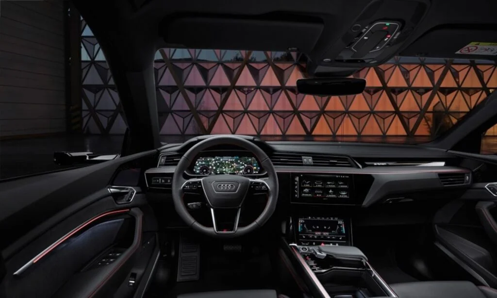 Topowy model elektrycznych Audi oferuje bogate wyposażenie. Wśród interesujących pozycji można wymienić m.in. opcjonalne ceramiczne hamulce wzmacniane włóknem węglowym, reflektory matrycowe LED, MMI Nawigation plus. MMI touch, Bang & Olufsen Premium Sound System z dźwiękiem 3D, system ostrzegający przed opuszczeniem pasa ruchu, dwa złącza ładowania, pompa ciepła, adaptacyjne zawieszenie pneumatyczne, napęd quattro z regulowaną blokadą mechanizmu różnicowego tylnej osi czy system e-tron Sport sound. Ponadto do dyspozycji kierowcy jest układ czterech kół skrętnych, adaptacyjne amortyzatory i blokada mechanizmu różnicowego tylnej osi.