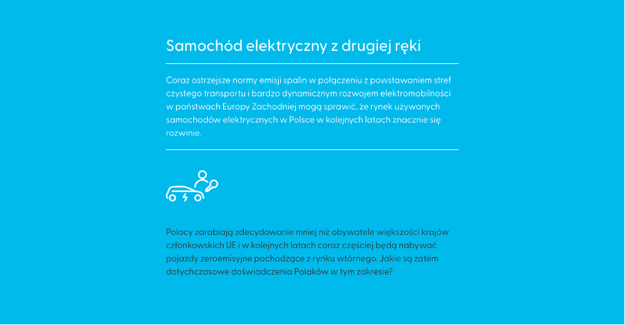 6. edycja Barometru Nowej Mobilności 2022/23 opracowana przez Polskie Stowarzyszenie Paliw Alternatywnych zawierała najważniejsze wnioski z badania opinii społecznej dotyczącego elektromobilności, w tym potencjału zakupowego Polaków w zakresie nabywania samochodów elektrycznych oraz ich preferencji związanych z infrastrukturą ładowania. Bardzo ciekawe dane zebrane na podstawie odpowiedzi ponad 1,5 tys. respondentów oraz wnioski, które nie znalazły miejsca w podstawowym wydaniu Barometru pozwoliły na stworzenie suplementu w postaci 10 Zeszytów tematycznych. Do tej pory przedstawiliśmy Zeszyt 1 Nowa Mobilność oraz Zeszyt 2 dedykowany strefom czystego transportu. Dziś prezentujemy Zeszyt 3 „EV z drugiej ręki”. Na naszych łamach opublikujemy w tym roku również pozostałych siedem Zeszytów. W kolejności będą to Zeszyty tematyczne: „Mobilność Polaków”, „Preferencje zakupowe”, „Co Polacy wiedzą o elektromobilności”, „Preferencje infrastrukturalne”, „Profil użytkownika EV”, „Teoretyczna sytuacja zakupowa” oraz „6 lat Barometru Nowej Mobilności”.