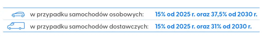 Pierwszym z nich jest projekt nowelizacji Rozporządzenia Parlamentu Europejskiego i Rady (UE) 2019/631 z dnia 17 kwietnia 2019 r. określającego normy emisji CO2 dla nowych samochodów osobowych i dla nowych lekkich pojazdów użytkowych. Rozporządzenie określa docelowe poziomy emisji CO dla unijnego parku pojazdów (od 2020 r., 2025 r. i 2030 r.) oraz wdraża mechanizmy, który mają zachęcać do szybszej popularyzacji pojazdów nisko- i zeroemisyjnych. Na podstawie aktualnie obowiązujących regulacji docelowe poziomy emisji CO dla unijnego parku pojazdów w latach 2020-2024 maja wynosić: