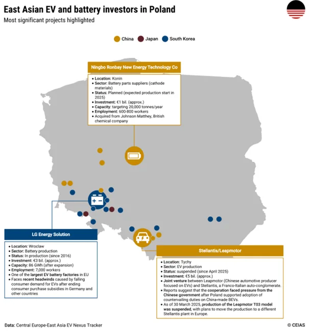 W ciągu ostatnich lat firmy z Korei Południowej, Chin i Japonii zainwestowały ponad 26 miliardów euro w czterech krajach Grupy Wyszehradzkiej, tj. w Polsce, Czechach, na Słowacji i na Węgrzech. Jednak to Polska zbiera największe laury, bo w 2023 roku odpowiadała za ponad 60 proc. produkcji baterii litowo-jonowych w Europie.
