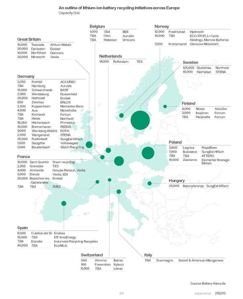Firma Northvolt również recyklinguje w Szwecji. – Celem Northvolt jest pozyskiwanie 50% surowców do produkcji ogniw bateryjnych z recyklingu do 2030 roku, kiedy to nasze moce produkcyjne będą wynosiły 150 GWh rocznie. Przy takich możliwościach produkcyjnych będziemy w stanie zapewnić dostawy baterii do 2,5 miliona aut rocznie.