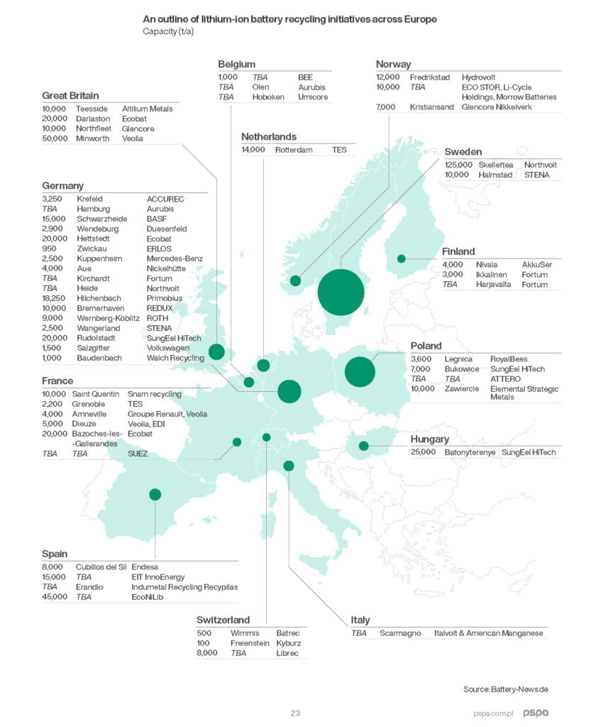 Firma Northvolt również recyklinguje w Szwecji. – Celem Northvolt jest pozyskiwanie 50% surowców do produkcji ogniw bateryjnych z recyklingu do 2030 roku, kiedy to nasze moce produkcyjne będą wynosiły 150 GWh rocznie. Przy takich możliwościach produkcyjnych będziemy w stanie zapewnić dostawy baterii do 2,5 miliona aut rocznie.