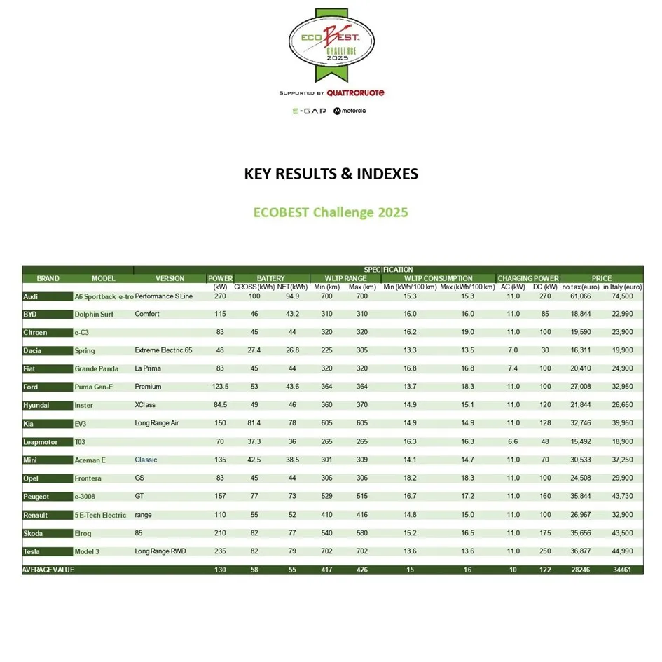 Warto podkreślić, że ECOBEST Challenge to jedyny test samochodów elektrycznych w Europie posiadający certyfikację Bureau Veritas, a dane zbierane są za pomocą dedykowanej aplikacji podłączonej do smartfonu Motorola w każdym aucie. Testy są w pełni niezależne, przejrzyste i prowadzone według tych samych procedur dla każdego modelu – niezależnie od marki.