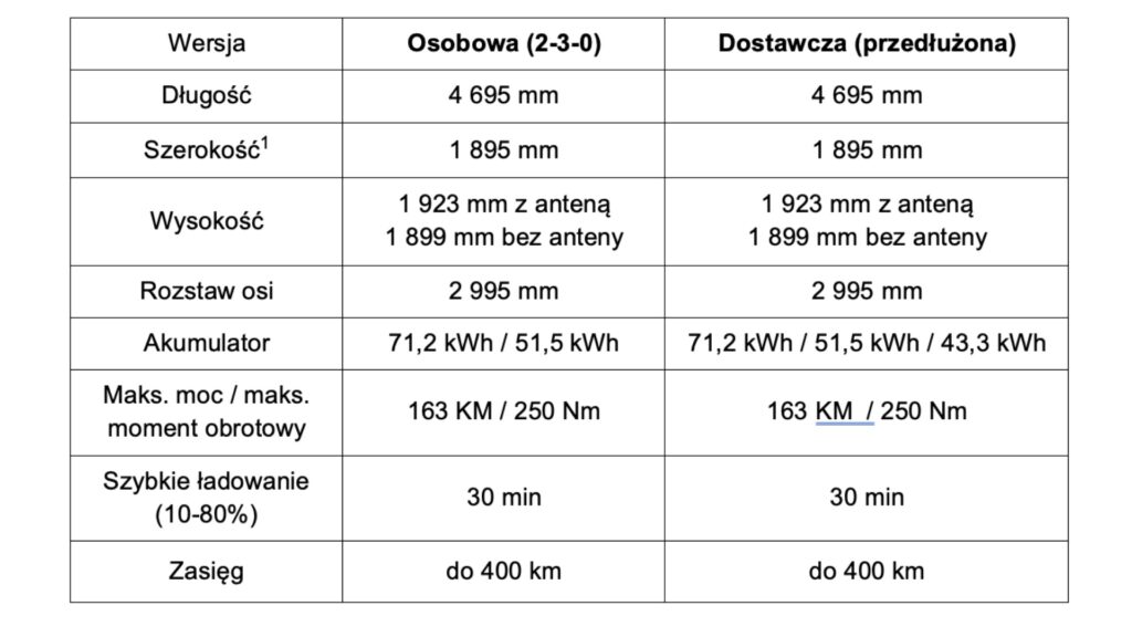 Później w ofercie pojawi się także wersja z akumulatorem 43,3 kWh. Tańsza, krótsza wersja (L1H1) może pojawić się na początku 2026 roku, długa wersja z wysokim dachem (L2H2) również trafi do sprzedaży.