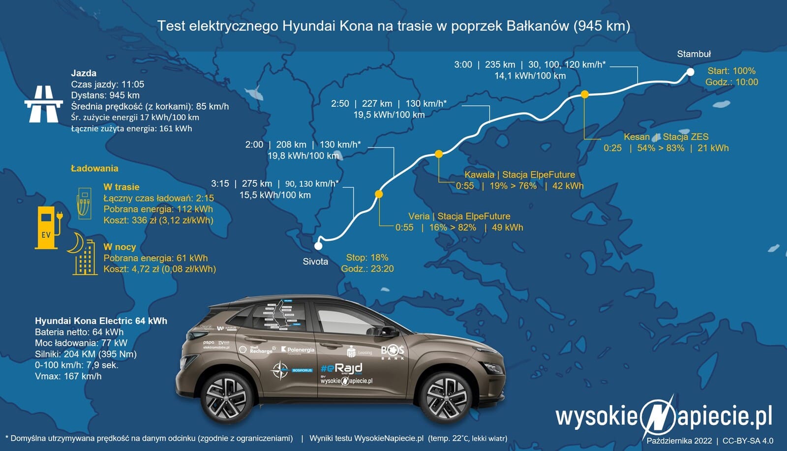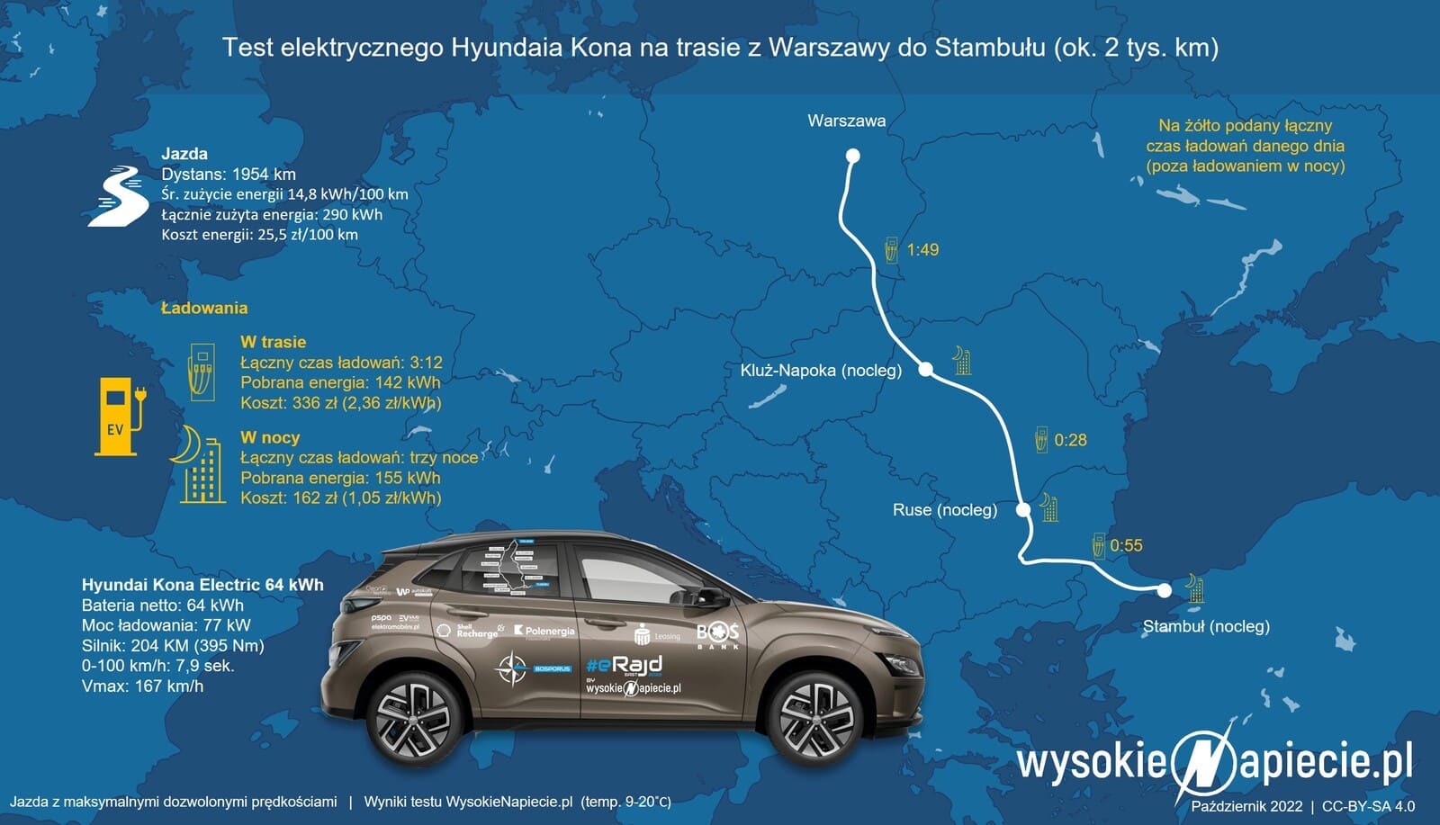 Za kierownicą samochodu elektrycznego przemierzyliśmy ponad 5 tys. km z Warszawy do Stambuły i wokół Bałkanów. Sprawdziliśmy jak na tej trasie spisał się Hyundai Kona Electric, jak sieć ładowarek i ceny ładowania w Polsce wypadają na tle 12 innych państw Europy i czy elektromobilność wciąż ma sens, przy rosnących stawkach na publicznych ładowarkach.