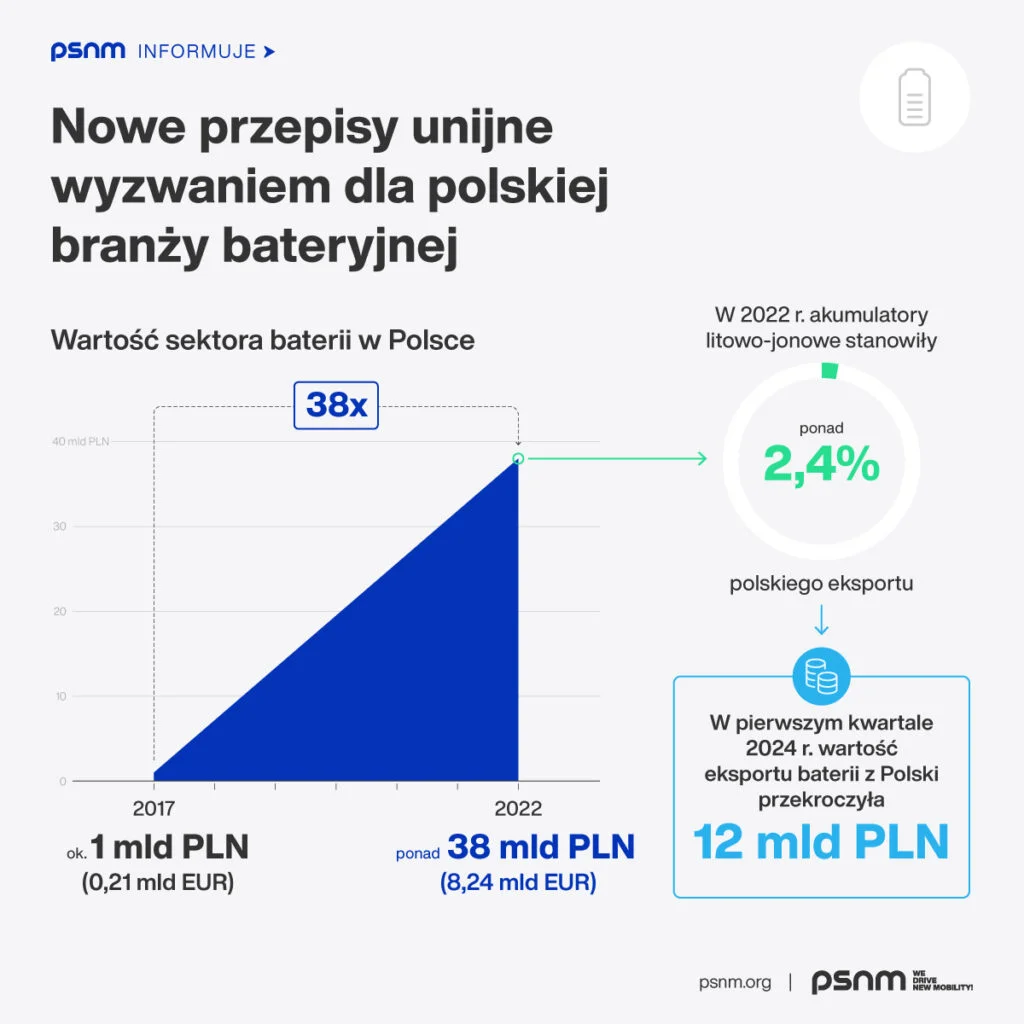 PSNM zaznacza, że o ile obecnie udział branży bateryjnej w Polskiej gospodarce i eksporcie jest już bardzo znaczący, o tyle w kolejnych latach ten sektor zyska strategiczne znaczenie. W 2023 r. globalna produkcja akumulatorów zwiększyła się o 42%. Według prognoz, do roku 2030 globalny popyt na baterie litowo-jonowe wzrośnie jedenastokrotnie, osiągając poziom dwóch terawatogodzin.