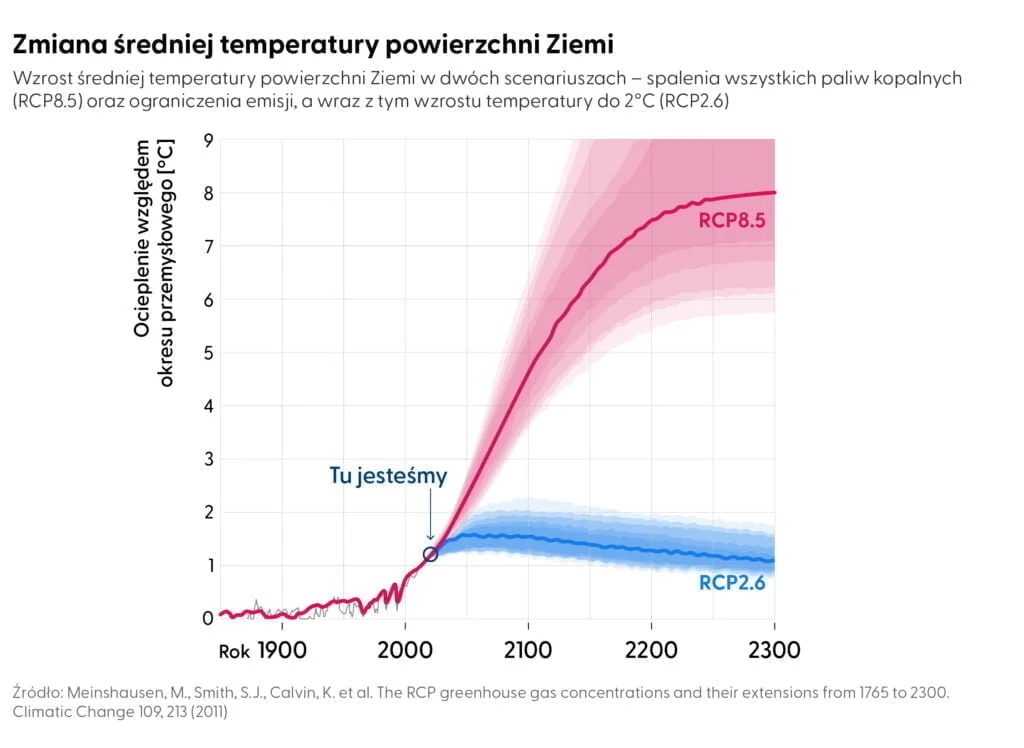 Optymistyczny scenariusz emisji gazów cieplarnianych zakładał, że przekroczenie wzrostu globalnej temperatury o 1 st. Celsjusza może nastąpić około 2050 r. Scenariusz negatywny, nazywany powszechnie business as usual, wskazywał na przełom lat 2030/2040.