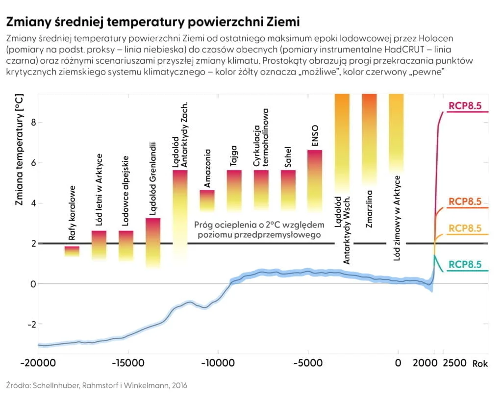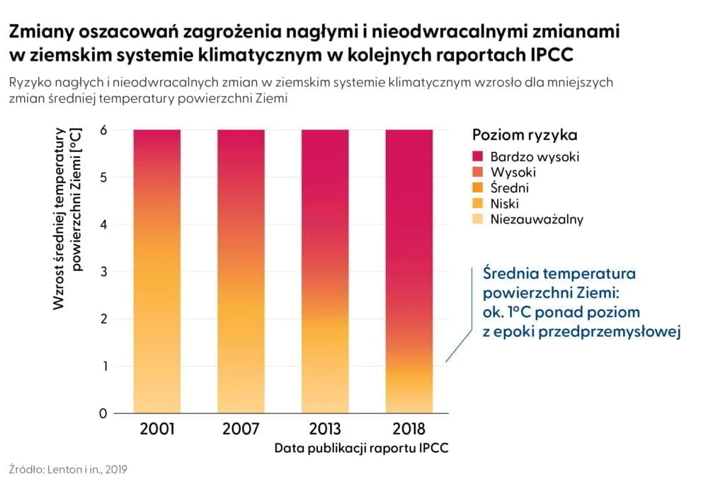 Autorzy raportu z Międzyrządowego Zespołu ds. Zmian Klimatu ostrzegają także o niebezpiecznych scenariuszach, gdy temperatury osiągną 1,5°C powyżej poziomów z lat 1850-1900. Niestety, wszystkie są pesymistyczne. Począwszy od znaczącego ubytku lodowców w Arktyce, przez wzrost pożarów i nasilenie ekstremalnych zdarzeń określanych „bezprecedensowymi w zapisach historycznych” – przewiduje się, że do 2100 r. ekstremalne zdarzenia, które dotychczas miały miejsce raz na sto lat, w niedalekiej przeszłości będą miały miejsce co najmniej raz w roku. Prof. Mirosław Miętus z Instytutu Meteorologii i Gospodarki Wodnej (IMGW-PIB) dodatkowo zauważa, że – podniesienie się temperatury Ziemi o półtora stopnia może uruchomić procesy, które zdestabilizują ziemski system klimatyczny. Wielu badaczy nazywa ten łańcuch zdarzeń efektem domina – dodaje.