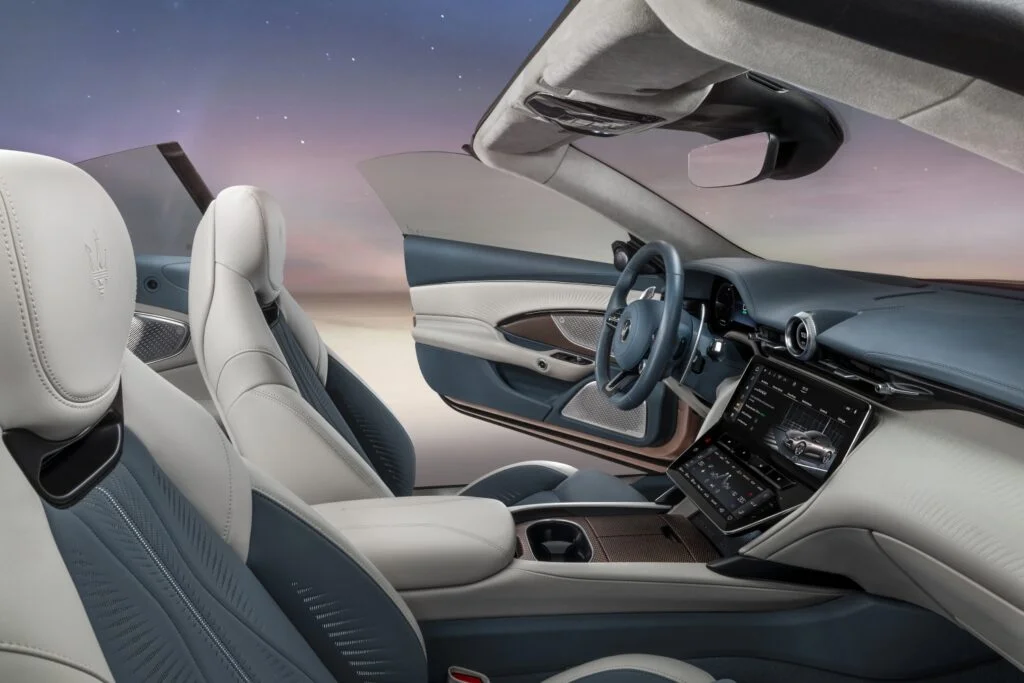 Mimo bateryjnego napędu Maserati nie rezygnuje z luksusowych elementów. Folgore oferuje pełnowymiarowe cztery miejsca, doskonały komfort jazdy oraz wysoką jakość wykończenia wnętrza. Miękki dach nie zajmuje wiele miejsca po złożeniu, a system podgrzewania szyi i głów oraz wiatrochron, pozwalają cieszyć się jazdą z otwartym dachem nawet w chłodniejsze dni.