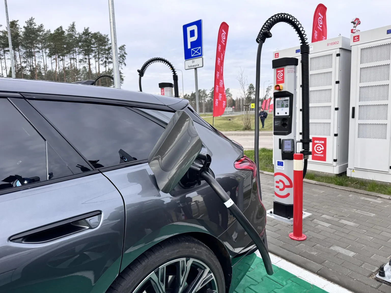 Równie intensywnie rozwija się ORLEN, który uruchomił swój pierwszy hub szybkiego ładowania ORLEN Charge na MOP Olsztynek Południe przy trasie S7. Lokalizacja została wyposażona w osiem stanowisk z dynamicznym zarządzaniem mocą i ładowarkami o mocy od 200 do 400 kW – w sprzyjających warunkach pozwala to skrócić postój do około 15–20 minut.