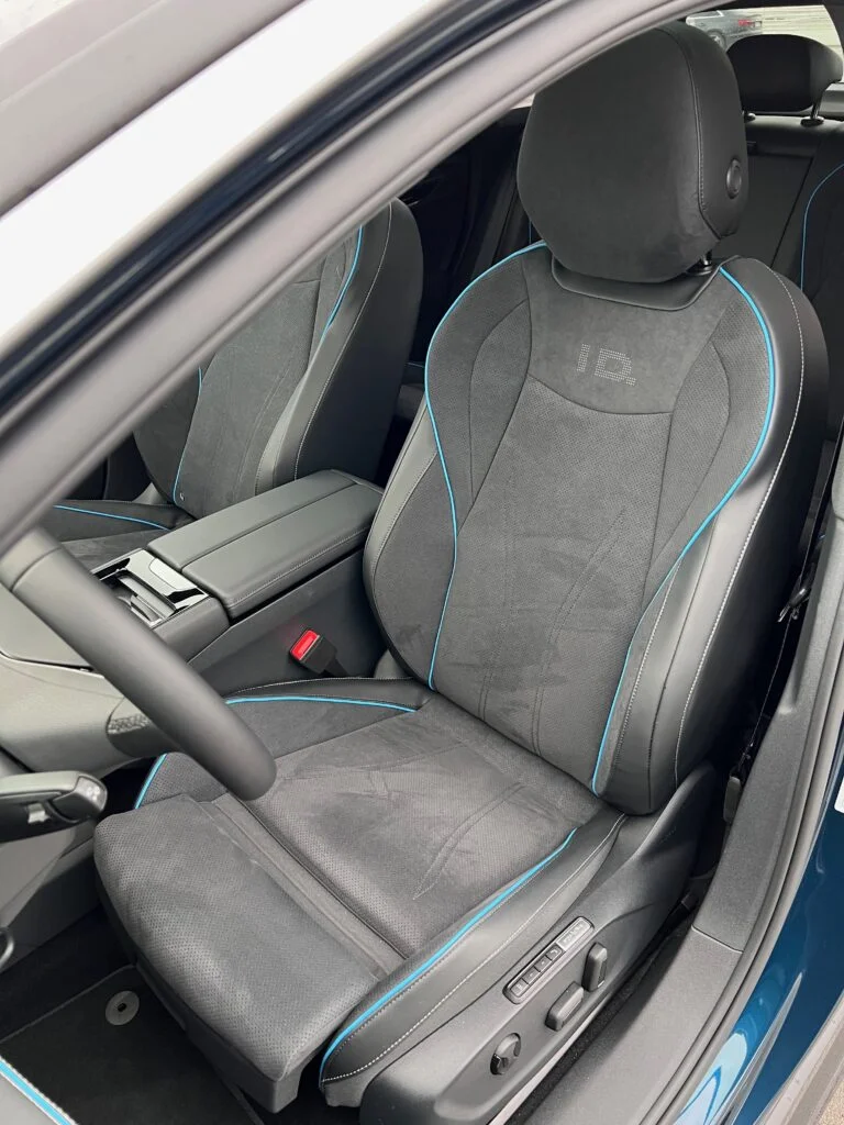 Pozycja za kierownicą nie jest szczególnie niska – zadowoleni więc będą ci, którzy akurat tę cechę SUV-ów lubią. Poszukujący sportowego klimatu tutaj akurat nie znajdą go zbyt wiele. ID.7 powinno za to dobrze sprawdzić się w trasach, za sprawą foteli, które nie tylko są już wyjściowo wygodne, ale i oferują funkcję masażu. Jest zaawansowany – niemal tak, jak w modelach luksusowych sprzed kilku lat.