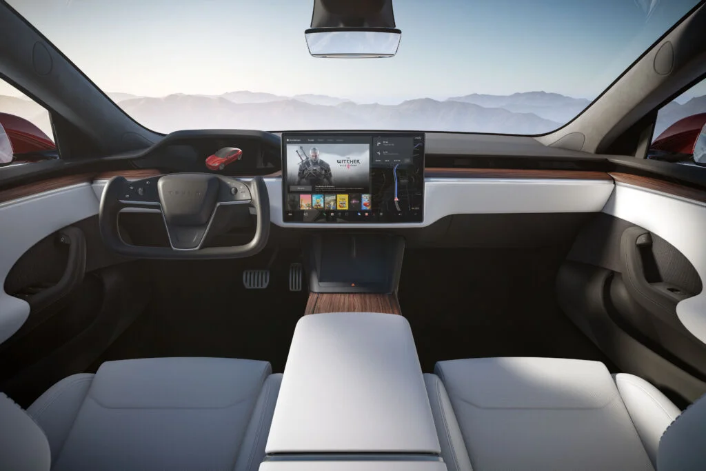 Środek Tesli Model S jest reklamowany jako „wnętrze przyszłości”. Jego centralnym punktem jest 17-calowy ekran dotykowy, pełniący rolę panelu kontrolnego. Jego wysoka rozdzielczość gwarantuje czytelność i intuicyjność obsługi. Umożliwia dostęp do różnorodnych funkcji, w tym klimatyzacji, nawigacji, systemu audio, ustawień foteli i wielu innych. Ci, którzy lubią umilić sobie podróż muzyką nie będą zawiedzeni, najnowszy Model S Plaid oferuje zaawansowany 22-głośnikowy, 960-watowy system audio z aktywnym wyciszaniem hałasu drogowego, dostarczający doskonałej jakości dźwięku. Ergonomiczne fotele, w pełni regulowane elektrycznie, zapewniają nie tylko wygodę, ale także możliwość dostosowania ich ustawień do indywidualnych preferencji kierowcy i pasażerów. Warto zauważyć, że dzięki przedniemu i tylnemu bagażnikowi oraz możliwości złożenia tylnych siedzeń na płasko, Model S dysponuje sporą jak na rozmiar samochodu ładownością. Nie zabrakło również zaawansowanego systemu autopilota, obejmującego funkcje adaptacyjnego tempomatu, utrzymania pasa ruchu, automatycznych zmian pasa i zdolności do parkowania. Jako dodatkowy element rozrywki, Model S Plaid oferuje rzecz niespotykaną w innych samochodach, czyli możliwość korzystania z gogli wirtualnej rzeczywistości (VR) podczas postoju.
