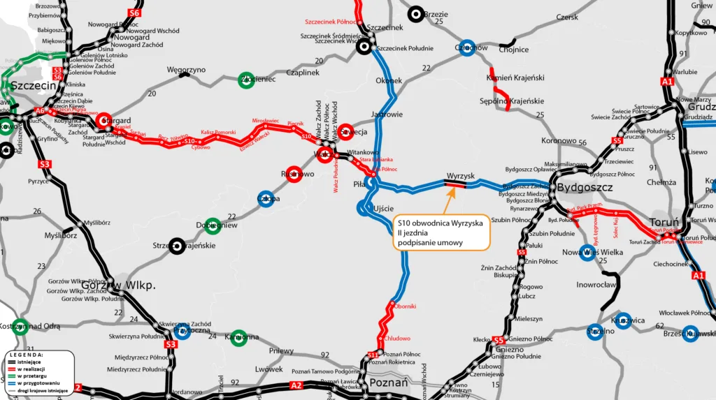 To niejedyna inwestycja na S10 w Wielkopolsce. Wcześniej podpisano umowę na odcinek między Wałczem a Piłą, a trwają też procedury środowiskowe dla odcinka Piła Wschód – Wyrzysk (31 km).