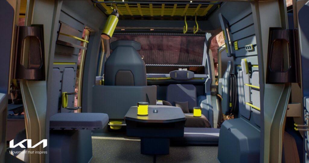 PV5 WKNDR to z kolei elektryczny van oparty na linii EV PBV (Purpose Beyond Vehicles) marki KIA, dedykowanej dla małych firm i dostaw towarów. Van jest podniesiony i wyposażony w opony terenowe – z założenia ma to być idealny pojazd na długie weekendy poza miastem. Wnętrze PV5 WKNDR jest modułowe, co umożliwia łatwe dostosowanie przestrzeni do różnych potrzeb. W aucie zastosowano także system przechowywania o nazwie „Gear Head”, który zapewnia przestrzeń na sprzęt poza pojazdem.