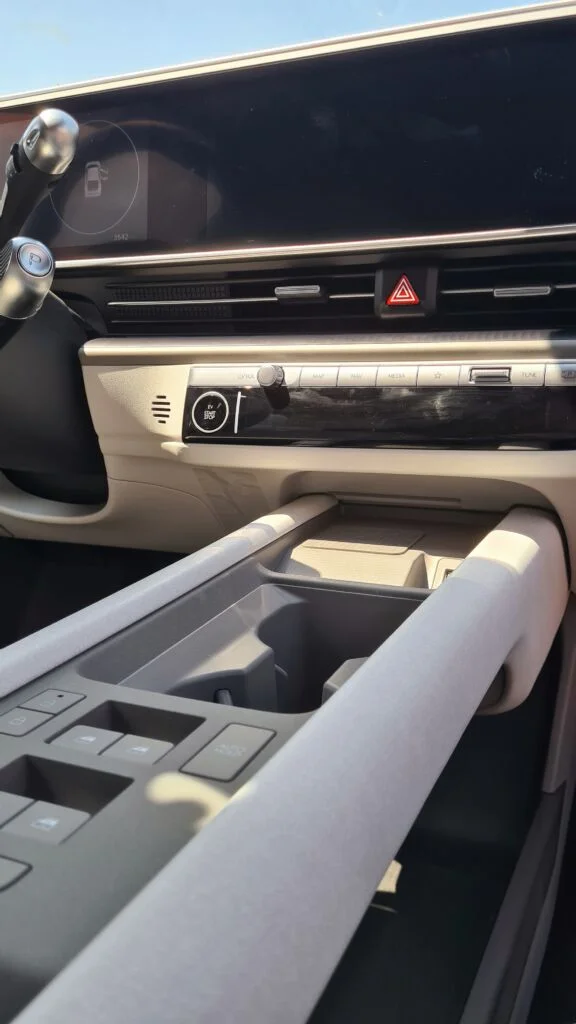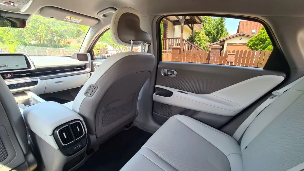 We wnętrzu znajdziemy przeszczepiony niemal 1 do 1 układ znany z IONIQ-a 5. Streamlinera od starszego brata odróżnia jedynie tunel środkowy na którym umieszczono cup holdery oraz przyciski do sterowania szybami. Wnętrze w większości wykonane zostało na wysokim poziomie z dużym udziałem materiałów pochodzących z recyklingu. Wątpliwości budzić może jedynie dobór mało przyjemnego plastiku na tunelu środkowym.