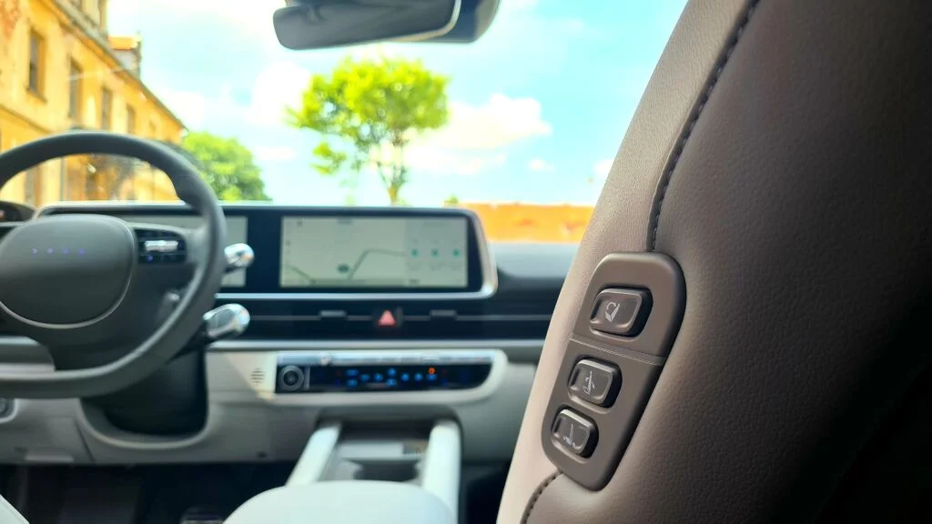 Zaskakująco normalnie. Z perspektywy kierowcy cyfrowe lusterka nie stanowią rewolucji w użytkowaniu pojazdu. Potrzebna jest jedynie chwila na porzucenie nawyku sięgania wzrokiem, aż za boczną szybę, chcąc sprawdzić otoczenie auta. Koszt pakietu Tech podmieniającego klasyczne lusterka na dwie wysunięte kamery to 8 tys. zł. Czy jest to opcja warta dołożenia – tak, jeżeli chcecie, aby wasz IONIQ krzyczał, że nie jest zwyczajnym autem i budził reakcję “wow” na ulicy.