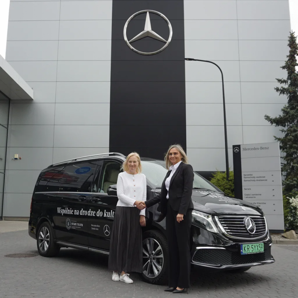 W ramach partnerstwa dealer użyczył teatrowi egzemplarz Mercedesa EQV 300, który umożliwi zespołowi podróżowanie po całej Małopolsce. Model ma siedem pełnowymiarowych miejsc.