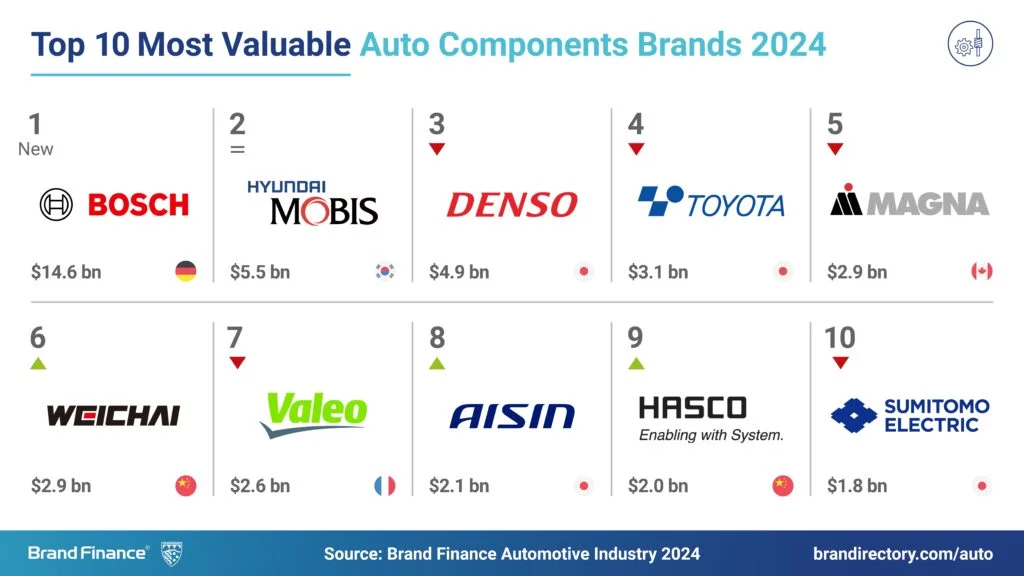 Natomiast najcenniejszą, czy jak kto woli najsilniejszą marką w obszarze Auto Components okazał się Bosch. Według badania Brand Finance marka wyceniana jest obecnie na 14,6 mld USD.