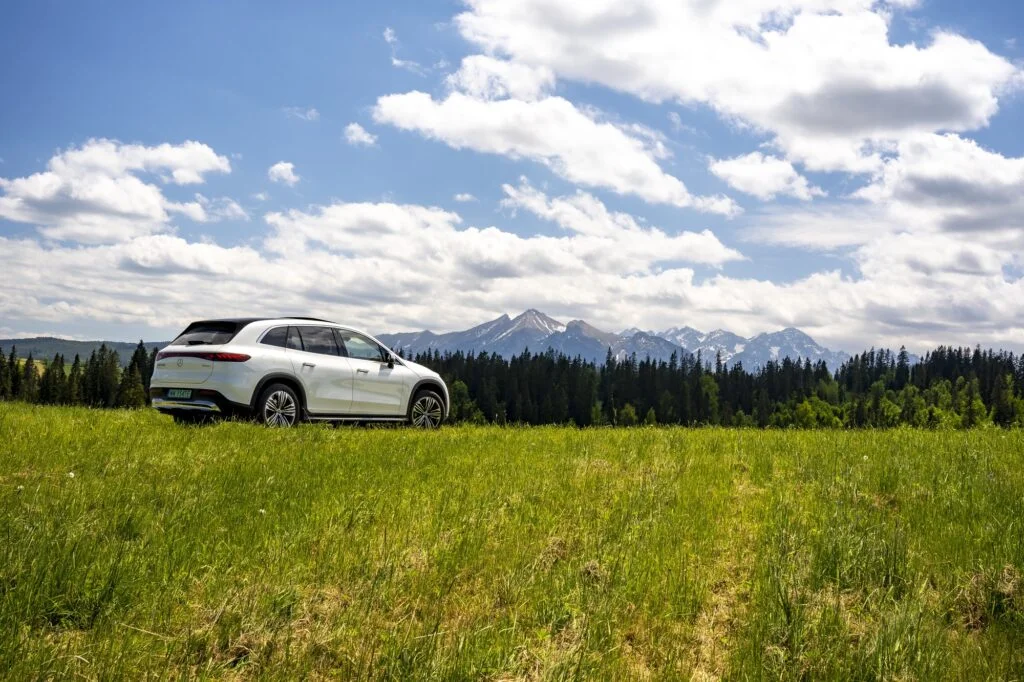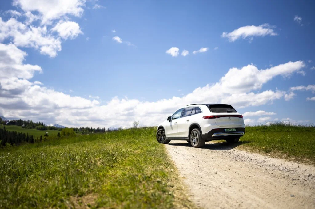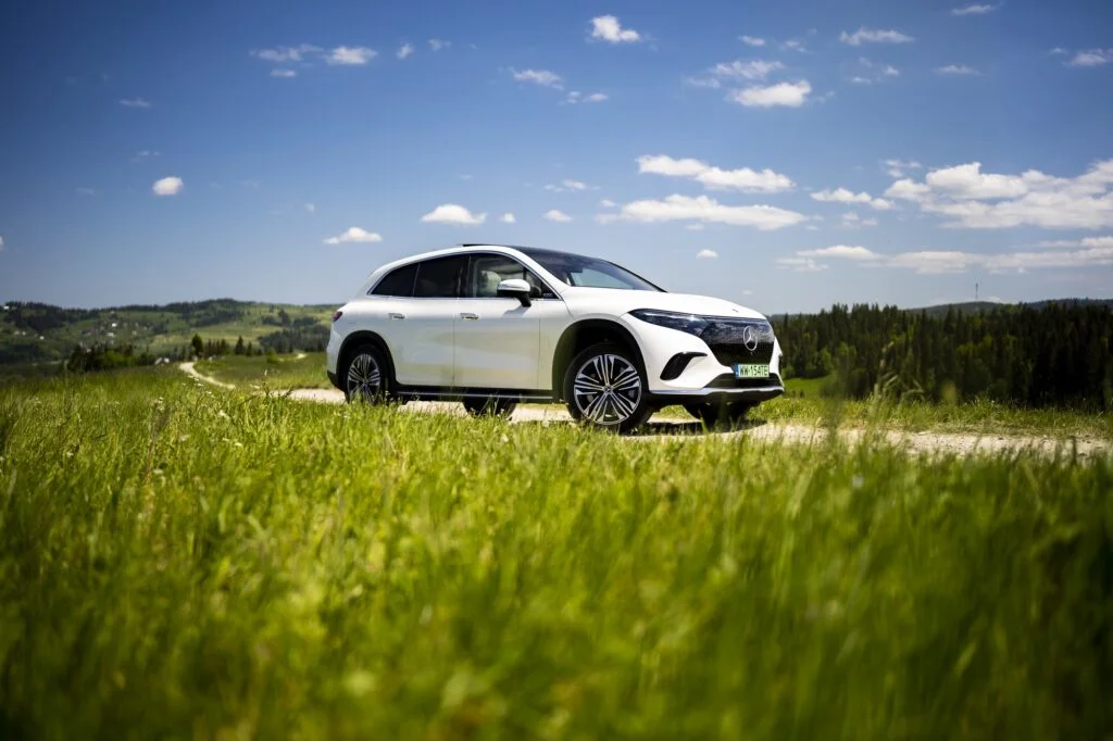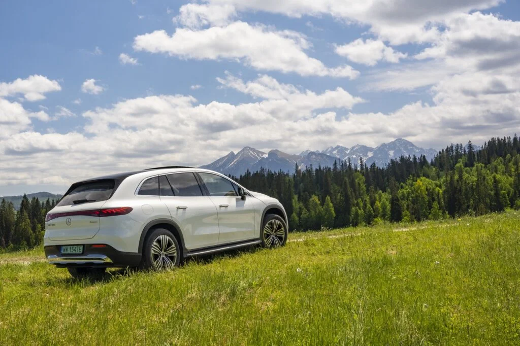 W efekcie zabiegów stylistycznych można mieć wrażenie, że topowy elektryczny SUV ma bliżej do podniesionego kombi niż wspomnianego wcześniej GLSa. Nie mniej jest to nadal dość egzotycznie wyglądający pojazd, który dzięki opływowości może (teoretycznie) przejechać do 593 kilometrów wg WLTP.