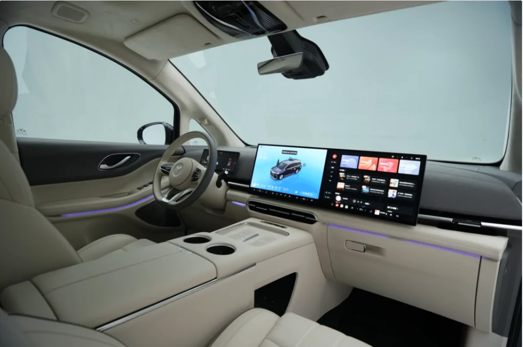 Kokpit modelu Voyah Dreamer zawiera dwa 15,4-calowe ekrany i 29-calowy ekran HUD. Warto wspomnieć też o zaawansowanej technologii – multimedia zawierają system HarmonyOS 4.0 firmy Huawei w połączeniu z chipem Qualcomm 8295P, dzięki czemu nowy Voyah Dreamer jest pierwszym na świecie vanem wyposażonym w Huawei Qiankun ADS 3.0 i system kokpitu Harmony.
