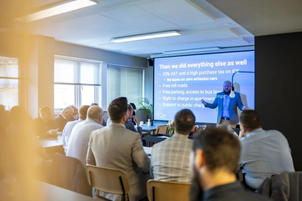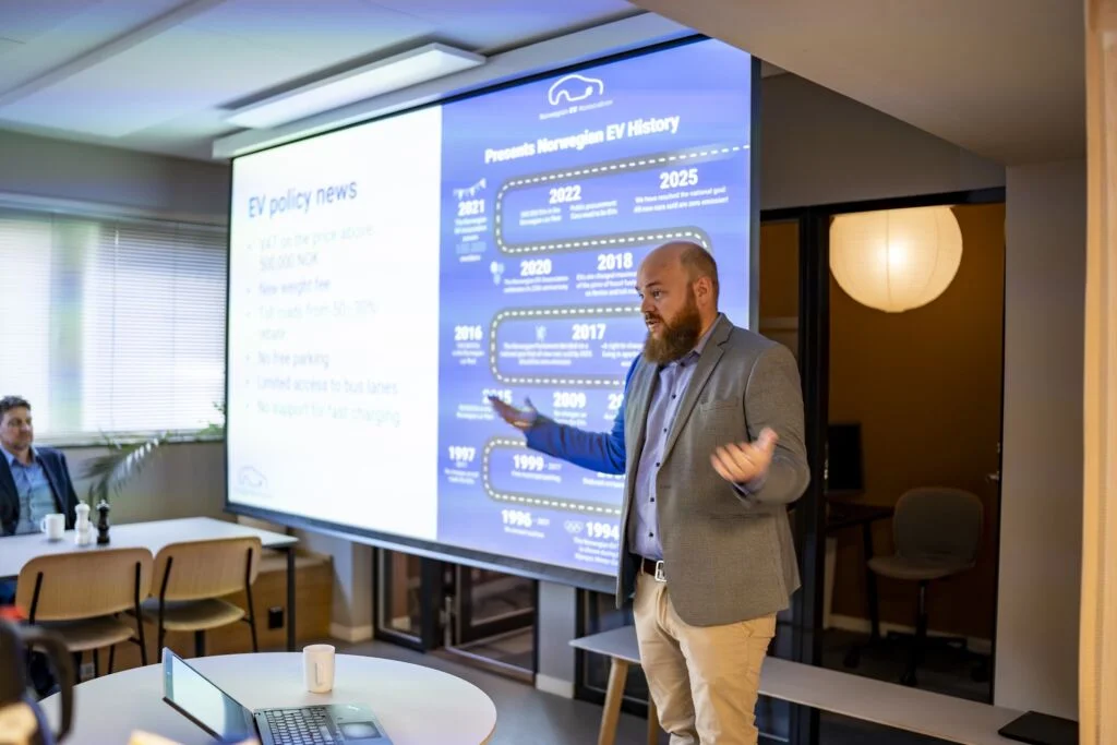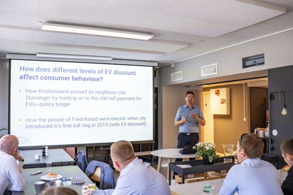 Polscy samorządowcy mieli również okazję porozmawiać z przedstawicielami Norsk Elbilforening – największej na świecie organizacji zrzeszającej kierowców pojazdów elektrycznych, liczącej obecnie przeszło 120 tysięcy członków. Podczas szeregu wykładów zorganizowanych specjalnie dla polskiej grupy, przedstawiono szczegółowe dane na temat obecnej struktury rynku samochodów oraz wpływie, jaki miał na nią i wciąż ma proces wdrażania opłat wjazdowych do miast. Przyjęte w pierwszym etapie darmowe, a w kolejnym zredukowane stawki wjazdu dla pojazdów zeroemisyjnych są jednym z 3 głównych powodów (wskazywane przez 72% respondentów w ramach The Norwegian EV driver Survey 2022), dla których mieszkańcy Norwegii decydują się na wybór „elektryka” (obok obniżonej stawki VAT oraz zwolnień z podatku od nabycia). Argumenty finansowe okazały się kluczowym motorem rozwoju rynku elektromobilności w Norwegii.