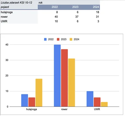 W świetle powyższego, Federacja Rowerowa stanowczo domaga się oddzielnego podejścia do hulajnóg elektrycznych i rowerów. Podkreśla, że choć liczba wypadków dzieci na rowerach systematycznie spada (np. dla grupy 10-12 lat spadek z 40 wypadków w 2022 r. do 31 w 2024 r.), to liczba wypadków z udziałem hulajnóg elektrycznych „rośnie i jest nieproporcjonalnie duża”. Federacja wskazuje, że ryzyko odniesienia ciężkich obrażeń w wyniku wypadku na hulajnodze elektrycznej jest kilkunastokrotnie większe niż na rowerze, a liczba ciężkich wypadków na hulajnogach w grupie 13-15 lat (42 w 2024 r.) jest niemal taka sama jak na rowerach (44), mimo że podróży na hulajnogach jest 20 razy mniej.