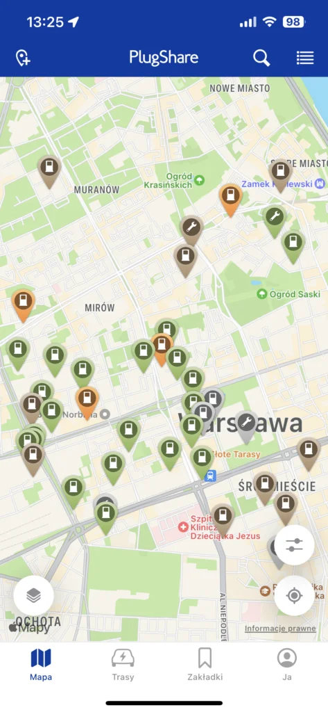 Wciąż bardzo popularna jest ta o nazwie PlugShare. Wyświetla ładowarki na całym świecie. Można czytać recenzje punktów ładowania (to bywa bardzo przydatne – można np. sprawdzić, że dany punkt od tygodni nie działa albo jest na terenie sklepu, który zamyka się codziennie o 20), dodawać zdjęcia, a przede wszystkim się w niej „odhaczać”. To oznacza, że kierowca, który rozpoczął ładowanie, odnotowuje to w PlugShare i inni użytkownicy wiedzą, że ładowarka jest obecnie zajęta. Można też dodać planowany czas zakończenia uzupełniania energii. Program wyszukuje także stacje dla użytkowników korzystających z abonamentów i konkretnych systemów płacenia za usługę. Za sprawą funkcji Pay with PlugShare można nawet uregulować poprzez aplikacje rachunek, gdy mówimy o stacji współpracującej z tym systemem.