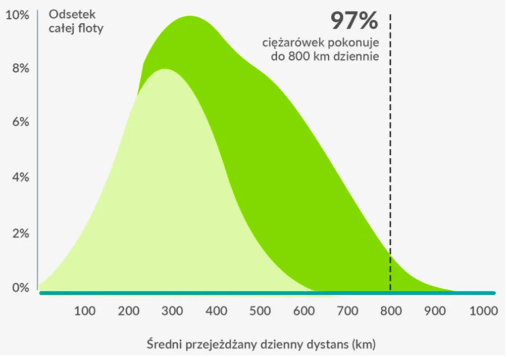 Problemem nie będzie też zasięg. Według statystyk 97% ciężarówek w Europie pokonuje nie więcej niż 800 km dziennie. Taka odległość już dzisiaj nie stanowi wyzwania. Doładowanie pojazdu odbywa się podczas 45-minutowej przerwy, która zgodnie z unijnym prawem przysługuje kierowcy w trakcie dłuższej niż 9-godzinnej zmiany (oprócz obowiązkowego nieprzerwanego 11-godzinnego odpoczynku).