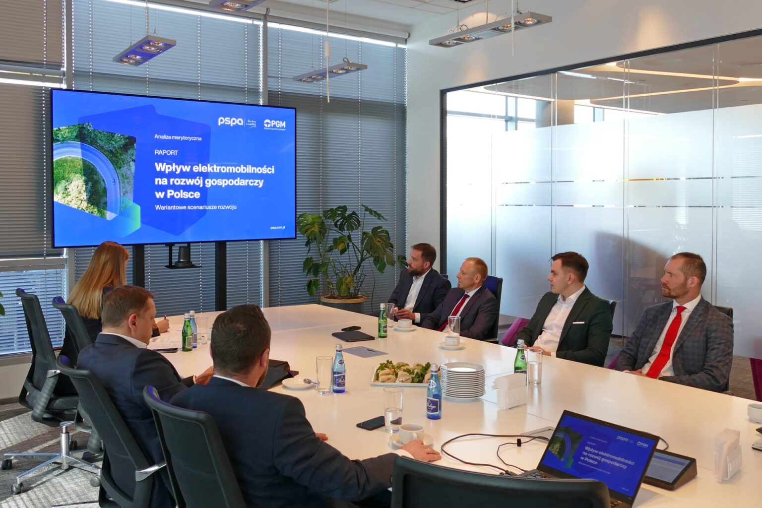 Spotkanie dotyczące rozwoju elektromobliności, wyzwań z nim związanych oraz szans, jakie elektromobilność stwarza dla polskiej gospodarki, zorganizowano 20 marca w siedzibie PwC w Warszawie. Wśród gości znaleźli się Michał Kurtyka, były Minister Klimatu i Środowiska, Maciej Mazur, Prezes Zarządu, PSPA, Piotr Michalczyk i Mateusz Płonka z PwC oraz reprezentanci zwycięzców poprzednich edycji badania: Maciej Klenkiewicz, Dyrektor Zarządzający, Nissan Sales CEE, Sebastian Anioł, Dyrektor Działu Innowacji, InPost, Radosław Kitala, Consulting & AMO Manager, Arval Service Lease Polska, Mateusz Grupa, Electromobility Manager, BMW Group Polska.