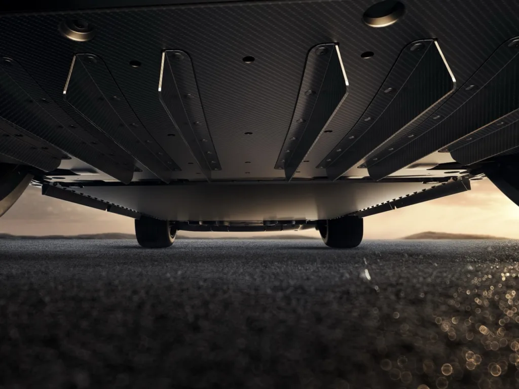 Jak podaje producent, zaawansowane rozwiązania techniczne obejmują między innymi akumulator o wysokiej mocy zoptymalizowany do jazdy torowej, specjalnie dostrojony układ chłodzenia i hamowania, pneumatyczne zawieszenie z podwójnymi komorami powietrznymi oraz adaptacyjne amortyzatory. Całość została dostrojona właśnie na torze Nurburgring.