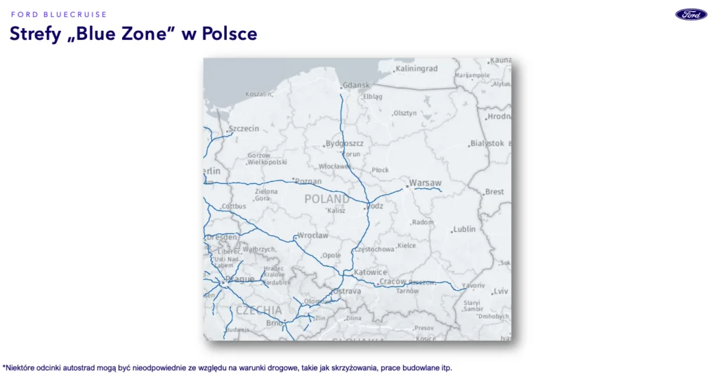 Teoretycznie nowoczesne drogi ekspresowe w Polsce też spełniają wymogi działania systemu BlueCruise, lecz nie wszędzie w Europie ta kategoria dróg wygląda tak samo. Ford na razie nie chce wprowadzać zbyt wielu wyjątków dla różnych kategorii dróg, ale niewykluczone, że w przyszłości BlueCruise będzie działał też na polskich „eskach”.