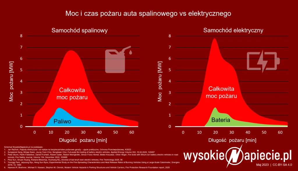 „Nie sposób postawić tezy, że pojazdy o napędzie elektrycznym palą się częściej niż pojazdy o konwencjonalnym napędzie. Skoro nie palą się częściej, to może generują więcej energii w pożarze? Dla tej tezy również nie znajdziemy potwierdzenia w literaturze lub badaniach. Oczywiście są pewne różnice w rozkładzie wydzielającej się energii w czasie, ale jej ilość jest porównywalna dla wszystkich nowoczesnych samochodów, bo główne >>paliwo<< pożaru, czyli ich wyposażenie i instalacje, są takie same w każdym nowoczesnym pojeździe” – tłumaczy w najnowszym numerze „Przeglądu Pożarniczego” bryg. Tomasz Jonio z KG PSP.