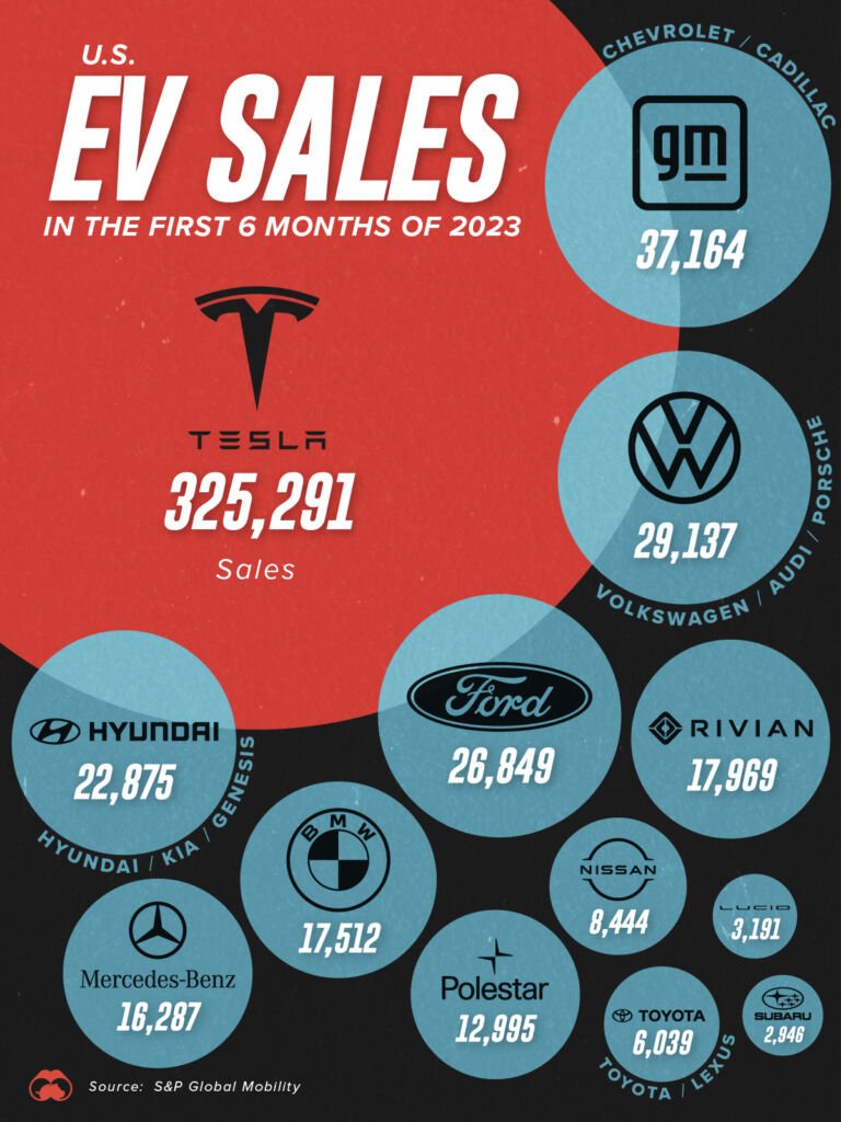 W okresie od 1 stycznia do 30 czerwca 2023 roku Tesla osiągnęła rekordową sprzedaż, dostarczając łącznie 325 291 pojazdów elektrycznych w Stanach Zjednoczonych. Warto zauważyć, że liczba ta przewyższa zbiorczą sprzedaż wszystkich innych producentów samochodów elektrycznych w USA.