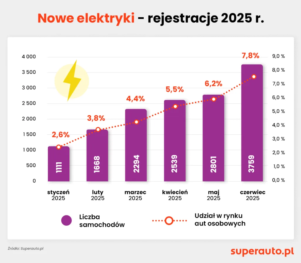 W czerwcu, wg danych IBRM Samar, zarejestrowano w Polsce 3 759 osobowych elektryków, o 958 (34%) więcej niż w maju i o 1 728 (85%) więcej niż przed rokiem. Według Grigoriya Grigorieva, poza cykliczną kumulacją zamówień w Tesli, jest kilka innych powodów tej sytuacji.