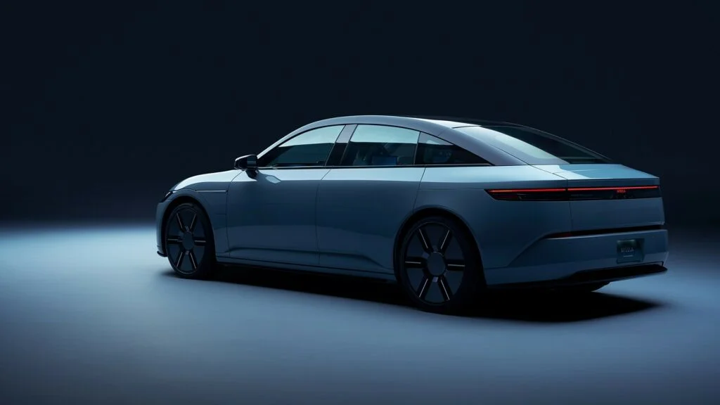 Afeela to duży, mierzący niemal pięć metrów sedan. Jego rozstaw osi to trzy metry, co z pewnością przełoży się na przestronność we wnętrzu. Minimalistyczna sylwetka z LED-owymi listwami i ukrytymi klamkami nie szokuje, ale z pewnością zwróci na siebie uwagę.