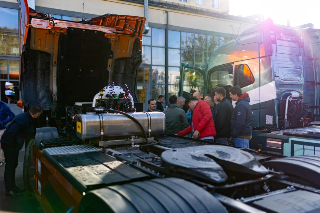 Dyrektor Zarządzająca Volvo Trucks Polska poza przedstawieniem najważniejszych wyzwań na rynku, przygotowała również niespodziankę dla Słuchaczy, którzy mieli możliwość zobaczyć, a nawet wsiąść do elektrycznych samochodów ciężarowych Volvo – modeli FM, które pojawiły się na terenie WSiMR Politechniki Warszawskiej. Obecni na miejscu eksperci odpowiadali na