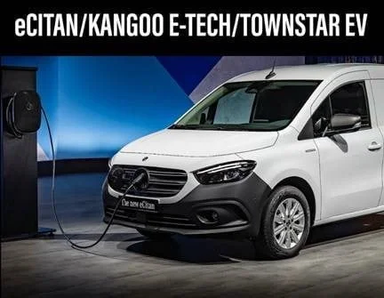 Mercedes eCitan / Renault Kangoo e-Tech / Nissan Townstar – znane trio, tym razem na prąd. Renault i Nissan bliźniaczo podobne, eCitan ze „swoim” wnętrzem i systemem MBUX sterującym pojazdem. Silnik ten sam – 120konny, bateria 45 kWh i zasięg około 280-300 km. Do tego opcja ładowania AC 22kW i DC 80kW. Wariant standardowy z ładownością około 600 kg, w przyszłości wariant długi i jeszcze wyższa ładowność. Możliwość holowania przyczepy – jest. Na rynku małych EV to trio stanowić będzie bardzo dobrą opcję w porównaniu już do nieco przestarzałej konstrukcji Stellantis oraz droższego ID. Buzza.