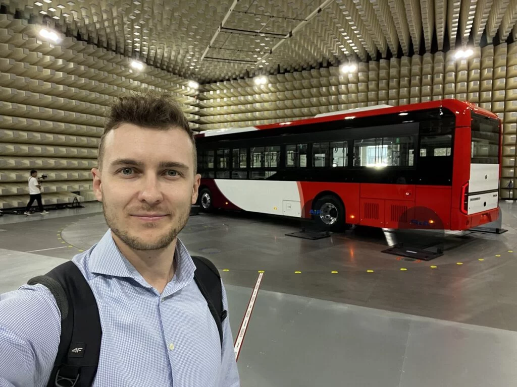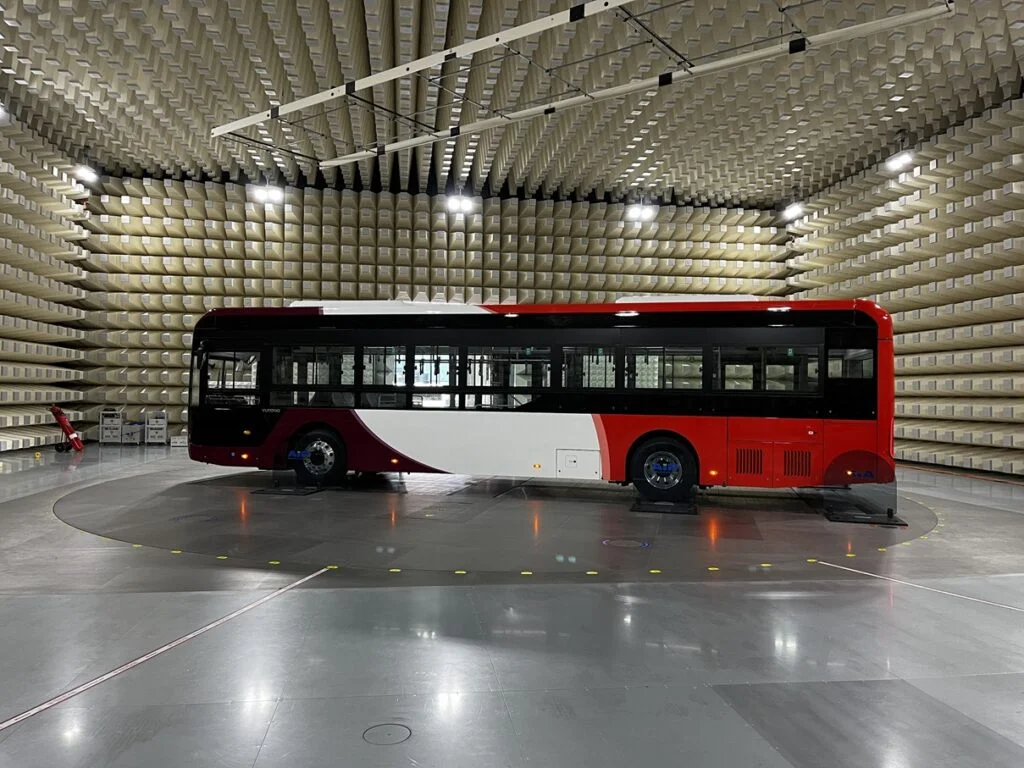 Kolejną ciekawostką z centrum badawczo-rozwojowego Yutong są testy autobusów pod względem emisji promieniowania elektromagnetycznego (EMI – Electromagnetic Interference). Jako wiodący producent autobusów, w tym pojazdów elektrycznych i autonomicznych, Yutong musi zapewnić, że ich produkty spełniają wszystkie normy dotyczące kompatybilności elektromagnetycznej (EMC – Electromagnetic Compatibility).