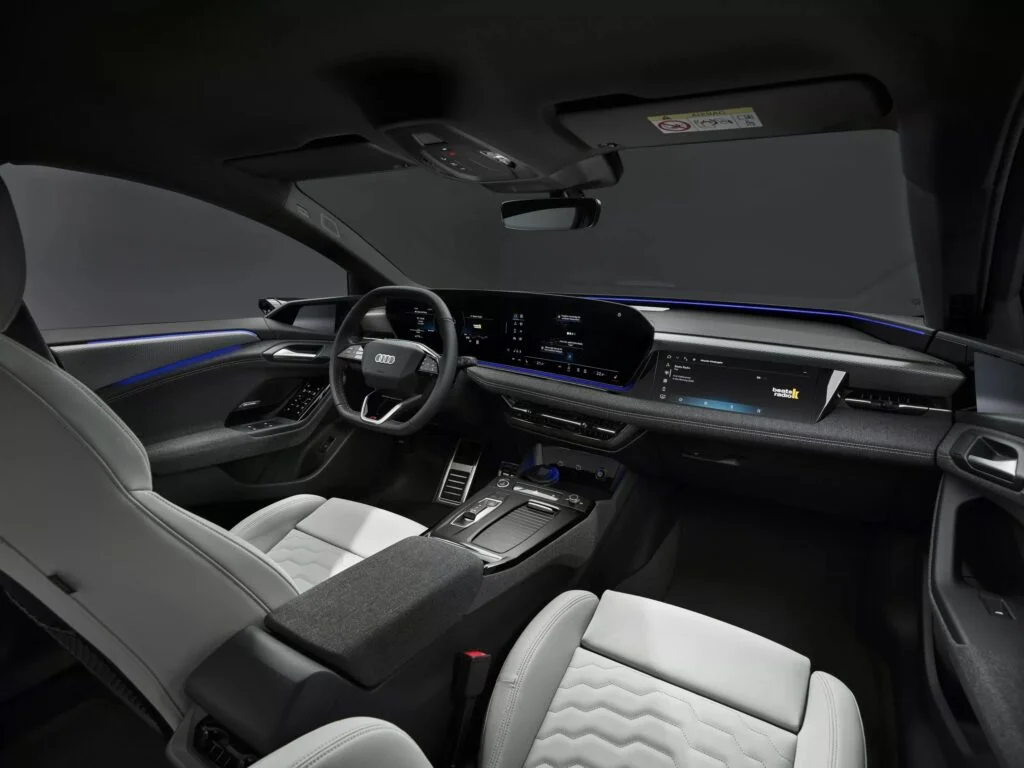 Nawet trzy ekrany, opcjonalny wyświetlacz HUD z funkcją rozszerzonej rzeczywistości, minimum fizycznych przycisków i kierownica nowego typu o nietypowym, sześciokątnym kształcie – tak najszybciej można opisać środek A6 e-tron. System multimedialny z ekranem 14,9 cala ma zintegrowanego ChataGPT. Na pokładzie nie zabrakło najnowszych technologii wspomagających kierowcę.
