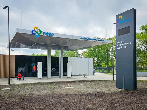 Stacja przy ul. Tango w Warszawie jest pierwszą z ogólnopolskiej sieci Neso, która ma liczyć co najmniej 30 stacji. Druga powstaje niemal równocześnie w bezpośrednim sąsiedztwie zajezdni należącej do Zarządu Transportu Zbiorowego w Rybniku, mieszczącej się ul. Budowlanych 6. To nie przypadek. Na początku lutego 2023 r. PAK – PCE Polski Autobus Wodorowy sp. z o.o., producent miejskich autobusów typu MAXI z ogniwami wodorowymi NesoBus, którego właścicielem jest PAK-PCE wygrał przetarg na dostawę 20 takich pojazdów dla Rybnika za 66,1 mln zł brutto. Umowę podpisano 28 marca 2023 r., zaś termin wykonania zamówienia upływa w połowie listopada br. Rybnicka stacja Neso, druga w Polsce, budowana jest pod obsługę tego kontraktu. Oddanie stacji do użytkowania przez inwestora jest planowane na III kwartał br. Również w Nowej Sarzynie i Rzeszowie powstaną do czerwca przyszłego roku dwie stacje tankowania wodoru, dzięki dofinansowaniu w kwocie 20 mln zł z NFOŚiGW.
